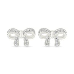 Diamond Bow Stud Earrings in Sterling Silver