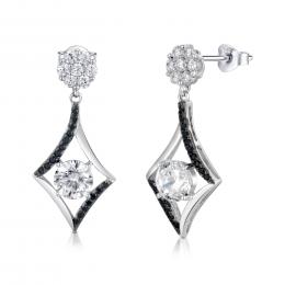 Sterling Silver Black & White Cubic Zirconia Drop Earrings