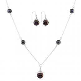Sterling Silver Black Freshwater Pearl 18" Necklace and Earrings Set