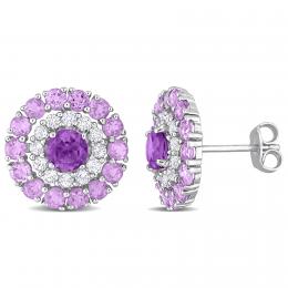 Julianna B Sterling Silver Amethyst and White Topaz Stud Earrings