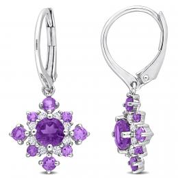 Sterling Silver Amethyst & Created White Sapphire Earrings