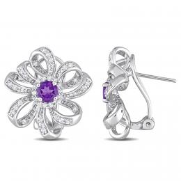 Julianna B Sterling Silver African Amethyst & White Topaz Floral Clip Earrings