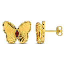 Julianna B Yellow Plated Sterling Silver Garnet Butterfly Earrings