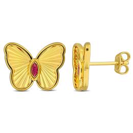 Julianna B Yellow Plated Sterling Silver Created Ruby Butterfly Earrings