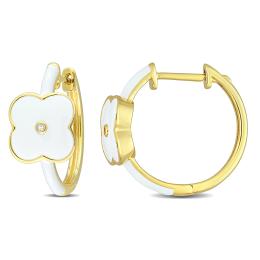 Julianna B Sterling Silver Yellow Plated Created White Sapphire Enamel Earrings