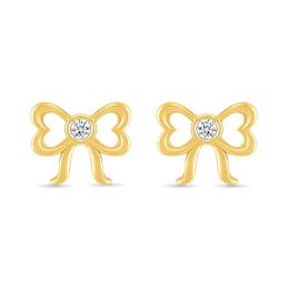 Diamond Heart & Bow Stud Earrings in Sterling Silver