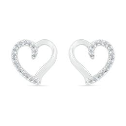 10K White Gold Diamond Heart Earrings