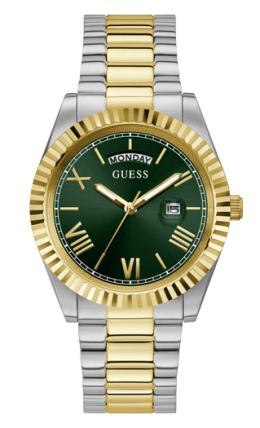 Guess Men's Brushed and Polished Steel Bracelet with Black Dial Watch