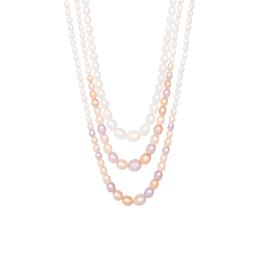 Sterling Silver 60" 4MM-11MM White and Purple Freshwater Pearl Necklace