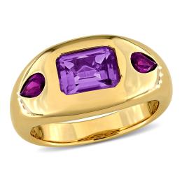 Julianna B Yellow Plated Sterling Silver Multi-Gemstone Semi-Eternity Ring