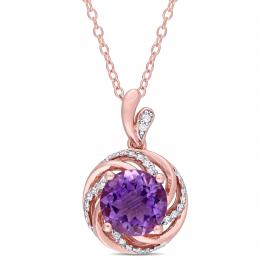 Julianna B Sterling Silver Amethyst Rose De France & Diamond Pendant