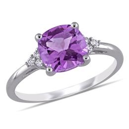 Julianna B 10K White Gold Amethyst & 0.018CT Diamond 3 Stone Ring