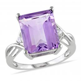 Julianna B Sterling Silver Emerald Cut Amethyst White Topaz Ring