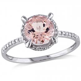 Julianna B Sterling Silver Round Cut Morganite & Diamond Accent Ring