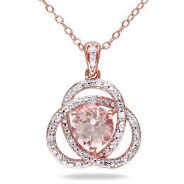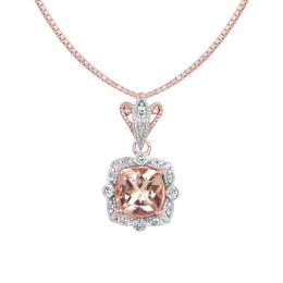 10K Rose Gold Morganite & Diamond Pendant with Chain