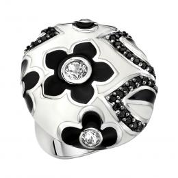 Sterling Silver Onyx, White Topaz & Black Enamel Ring