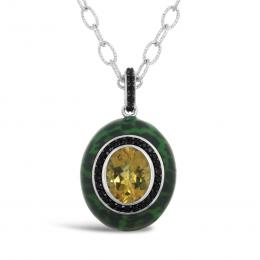 Sterling Silver Onyx, Honey Topaz & Enamel Pendant