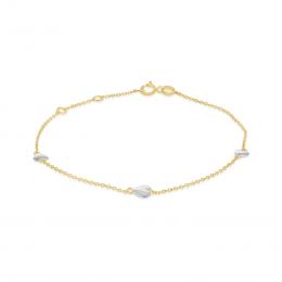 10K Yellow and White Gold 10" 3 Stations Heart Anklets