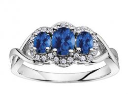 10K White Gold Diamond 0.10CTW & Blue Sapphire Fashion Ring