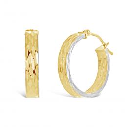 10K Yellow and White Gold Double Hoop Swarovski Crystal
