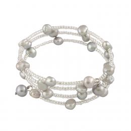 Sterling Silver 6-7mm Multiple Row Coil Freshwater Pearl Bracelet