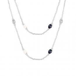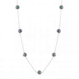 Sterling Silver 5 Stationed 7-8mm Pearl Necklace