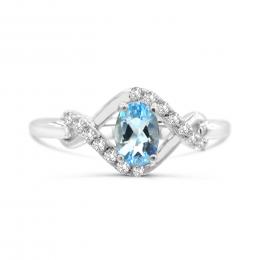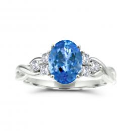 10K White Gold Blue Topaz & Diamond Ring