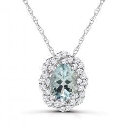 10K White Gold Aquamarine & Diamond 18" Pendant
