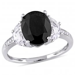 Julianna B Sterling Silver Black Sapphire Created White Sapphire & Diamond Ring