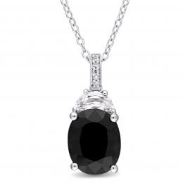 Julianna B Sterling Silver Sapphire, Created White Sapphire & Diamond Pendant