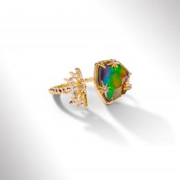 KORITE STARLIGHT Sterling Sliver 18K Gold Plated Ammolite & White Topaz Ring