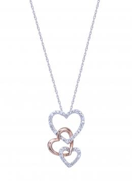 Sterling Silver Triple Heart Diamond Pendant