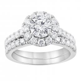 New Brilliance Lab Grown 2.10CTW Emerald Cut Diamond Halo Ring in 14K White Gold