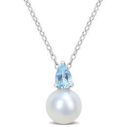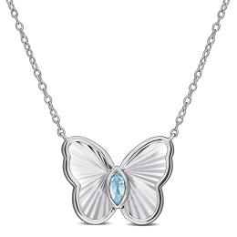 Julianna B Sterling Silver Aquamarine and Blue Topaz Necklace 18" + 2" Extender