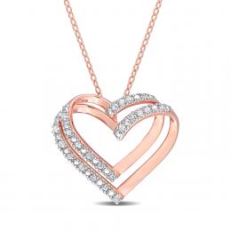 Lab Grown 0.11CTW Diamond Heart Paperclip Necklace in 18K Yellow Gold Vermeil