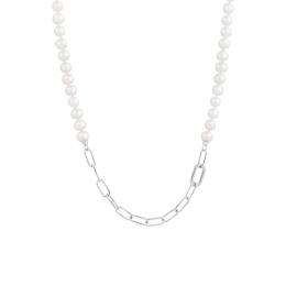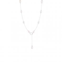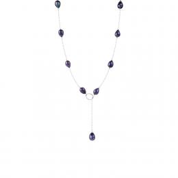 Sterling Silver 60" 4MM-11MM White and Purple Freshwater Pearl Necklace