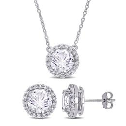 Julianna B Sterling Silver Created White Sapphire Earrings 18" Pendant Set