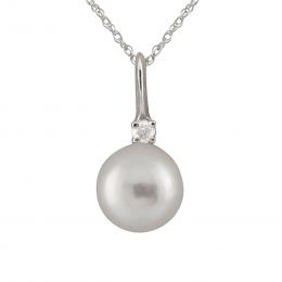 14K White Gold 8-8.5mm Round Akoya Pearl & Diamond Pendant