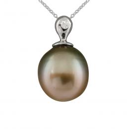 14K White Gold Diamond and Round 11mm Tahitian Pearl Pendant