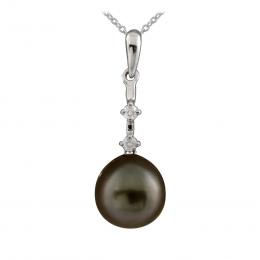 14K White Gold 9-10mm Tahitian Pearl & Diamond Pendant