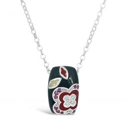 Sterling Silver Diamond & Ruby with Enamel Pendant