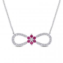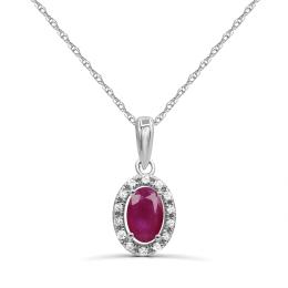 10K White Gold Ruby & Diamond 18" Pendant
