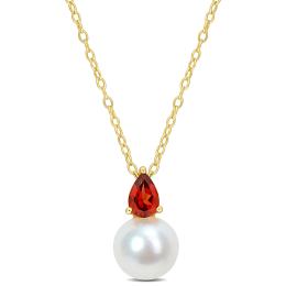 Julianna B Yellow Plated Sterling Silver Garnet & 8.5-9MM Pearl Pendant