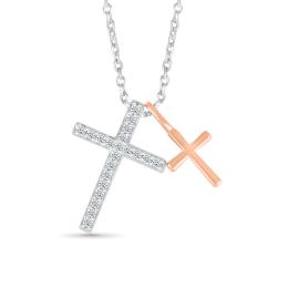 Sterling Silver & Rose Gold Diamond Crosses Necklace