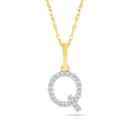 10K Yellow Gold & Diamond "Q" Initial Pendant