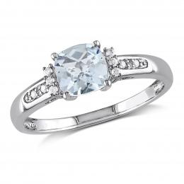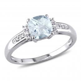 Julianna B 10K White Gold Cushion-Cut Aquamarine and Diamond Ring
