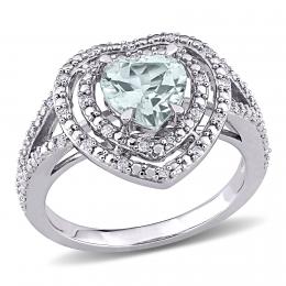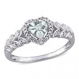Julianna B Sterling Silver Aquamarine & 0.10CT Diamond Heart Ring