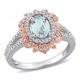 Julianna B 10K White & Rose Gold Aquamarine & Diamond Ring