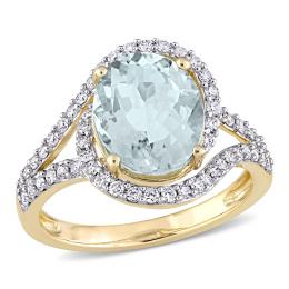 Julianna B 14K Yellow Gold Aquamarine & 0.50CTW Diamond Ring