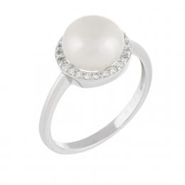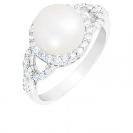 Sterling Silver 9-10mm Freshwater Pearl and Cubic Zirconia Ring